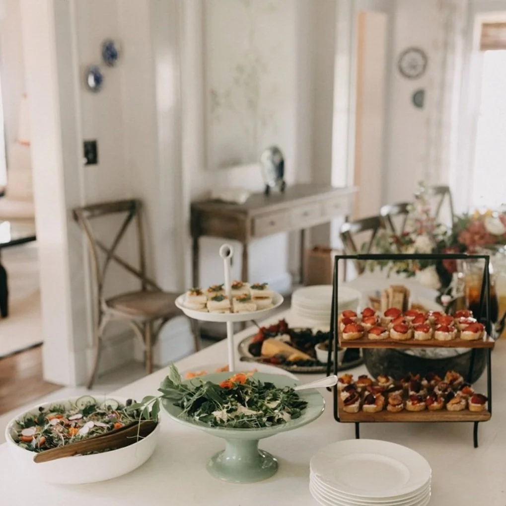 Full service is available for up to 30 guests. Appetizers and cocktail hour bites are available for up to 60 guests.
